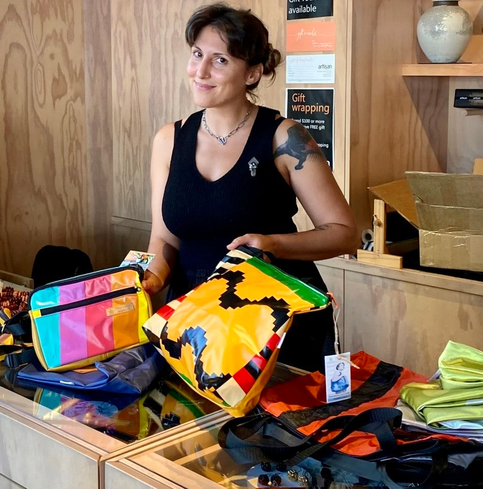 Float to Fashion, Bags & Accessories made from upcycled pool inflatables.