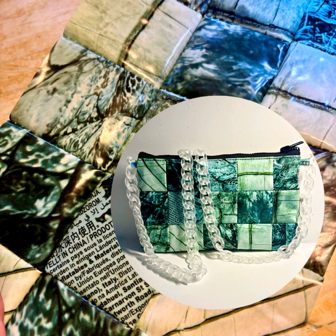 Sustainable Patchwork Evening Purse Clutch Bag – Eco-Friendly Purse Made from Upcycled Pool Inflatables