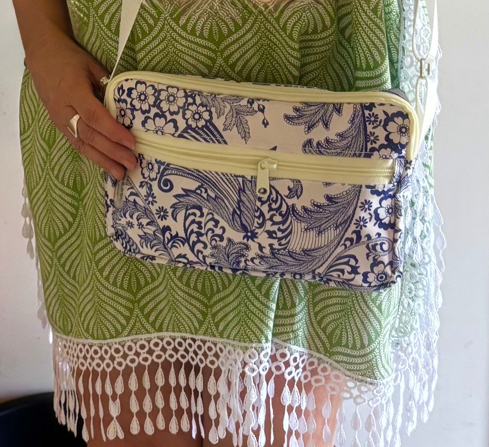 The Cross Body bag has a long zipper for a wide bag opening and the two zipper pockets give plenty of space to carry all you need! A sustainable bag for every day use!