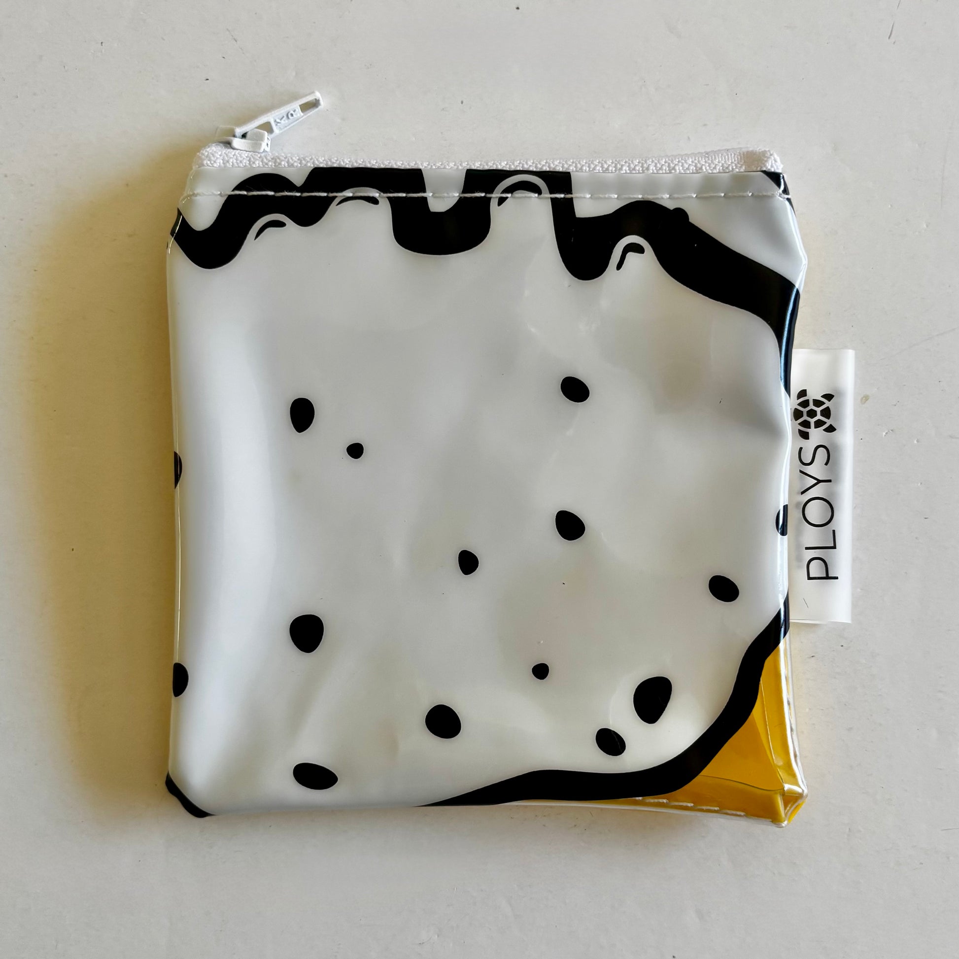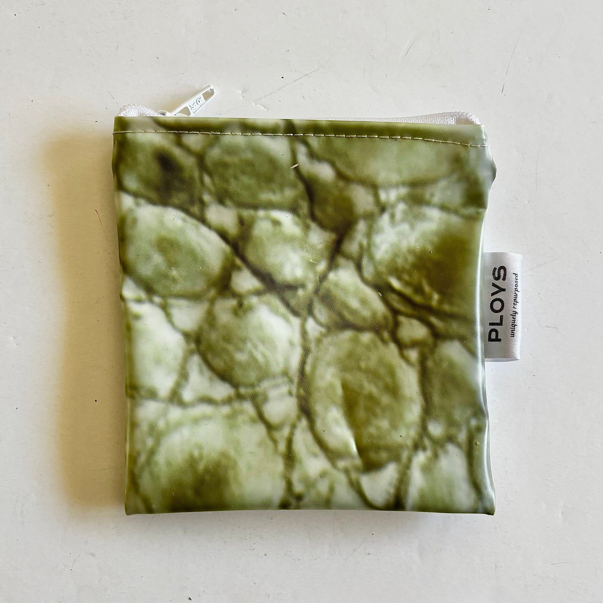 A water resistant and weatherproof flat wallet made from recycled pool inflatables, perfect for coins, credit cards, keeping shampoo or soap bars, cosmetics or functions as a tea wallet, storing IPods, small stationary items, kids buscards or tuck-shop money, or to organise sanitary items, to name a few useful ways to use small handy wallet.